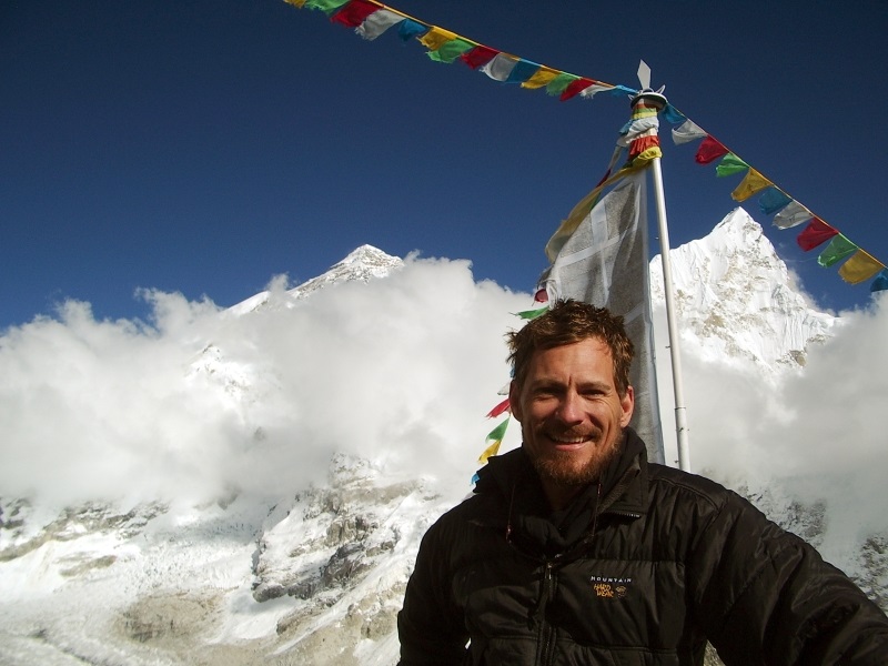 Our high point on Kala Patar at 18,000 feet. Everest is to the left, Lhotse to the right.