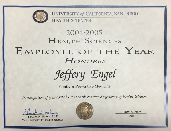 - 2005 UCSD Health Sciences Employee of the Year Honoree for process re-engineering through system analysis, design, and custom software development work.